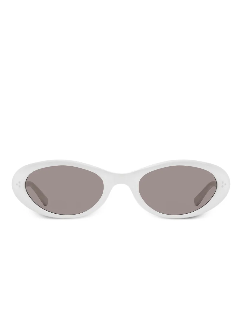 Lolang W2 oval-frame sunglasses Highlights - White - Grey tinted lenses - Oval frame - Nose pads - Silver-tone hardware - Straight temples - These glasses come with a protective case. Imported Composition Acetate 100% SIZE & FIT Measurement Lens Diameter 2.16 in(5.5 cm) Bridge Width 0.82 in(2.1 cm) Total Width 5.78 in(14.7 cm) Arm Length 5.19 in(13.2 cm)