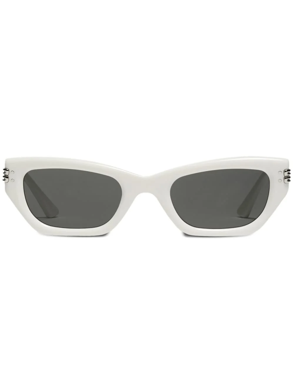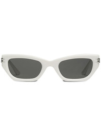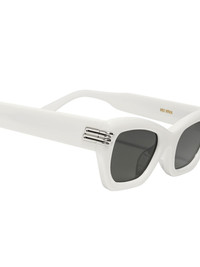 rectangle-frame sunglasses cream white engraved logo rectangle frame grey tinted lenses straight arms curved tips These glasses come with a protective case. Imported Composition Acetate 100% SIZE & FIT Measurement Arm Length 5.71 in(14.5 cm) Bridge Width 0.9 in(2.3 cm) Lens Diameter 2.04 in(5.1 cm) Washing instructions Specialist Cleaning