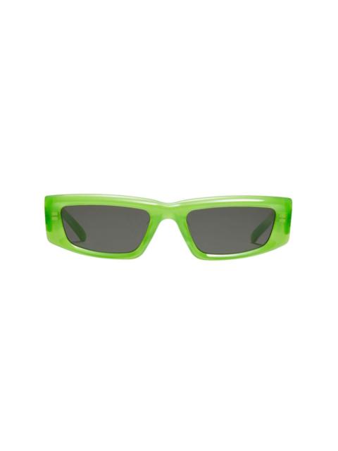 rectangular frame sunglasses black acetate tinted lenses rectangle frame logo plaque at the arm straight arms These glasses come with a protective case. Imported Composition Acetate 100% SIZE & FIT Measurement Arm Length 5.75 in(14.6 cm) Total Width 5.84 in(14.8 cm) Lens Diameter 2.15 in(5.4 cm) Bridge Width 0.78 in(2 cm) Washing instructions Specialist Cleaning