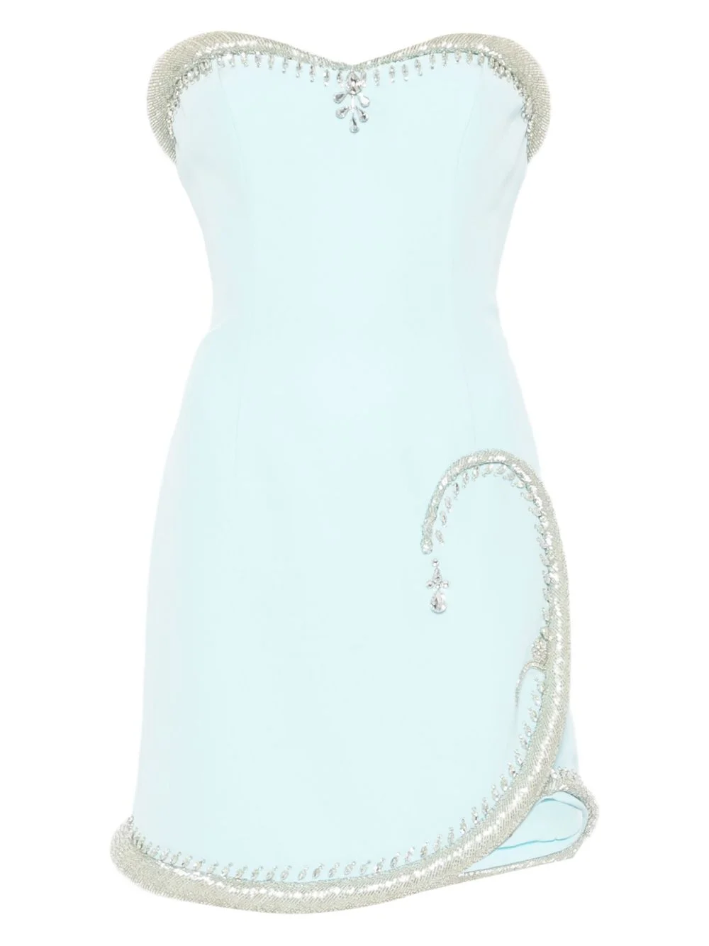 embellished strapless dress Highlights - Light blue - Crystal embellishment - Strapless - Asymmetric hem - Beaded trim Imported Composition Silk 50%, Polyamide 30%, Acetate 20% SIZE & FIT Model measurements Height 5 ft 10 in(1.78 m) Bust/Chest 31.49 in(80 cm) Hips 37 in(94 cm) Waist 23.62 in(60 cm) Washing instructions Read Manufacturer Guidelines