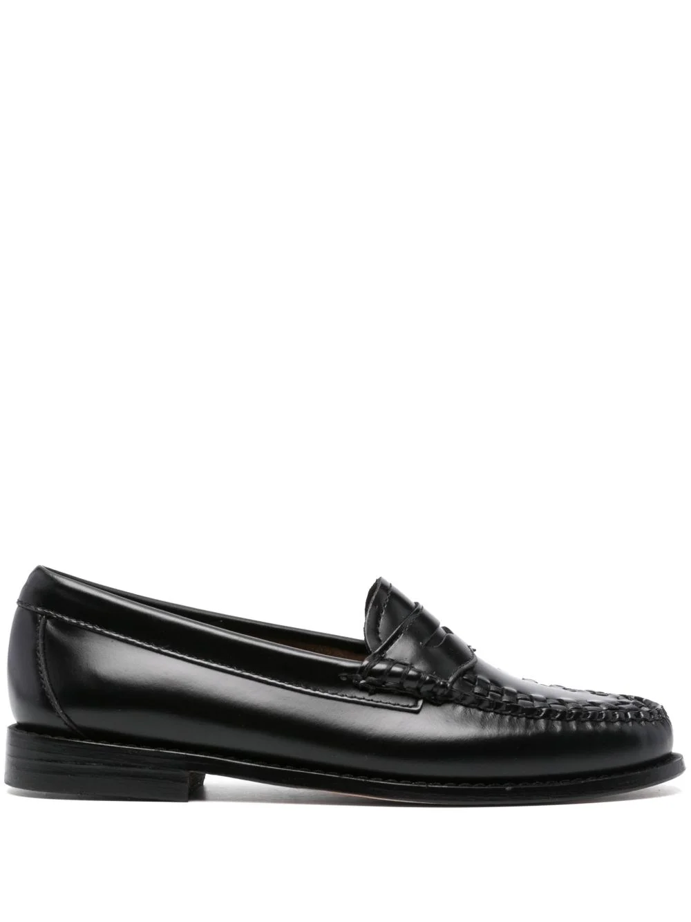 Weejuns Penny Weave loafers Highlights - Black - Calf leather - Polished finish - Slip-on style - Front penny slot - Interwoven details - Almond toe - Branded leather insole - Stacked heel - Leather sole Imported Composition Outer: Calf Leather 100% Lining: Calf Suede 100% Sole: Calf Leather 100% SIZE & FIT Measurement HEEL 0.78 in(2 cm)