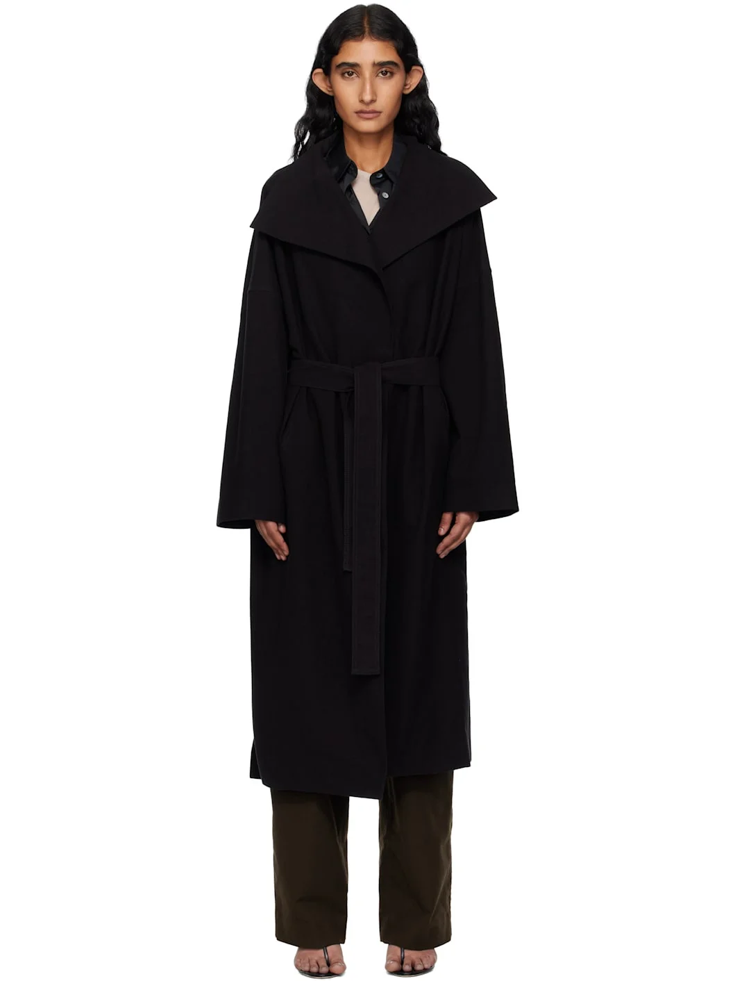 Stretch cotton moleskin coat. · Notched lapel · Open front · Belt loops · Detachable self-tie belt · Welt pocket at waist · Vented side seams · Dropped shoulders · Full satin lining Supplier color: Black 98% cotton, 2% polyurethane. Made in Viet Nam 252749F059004