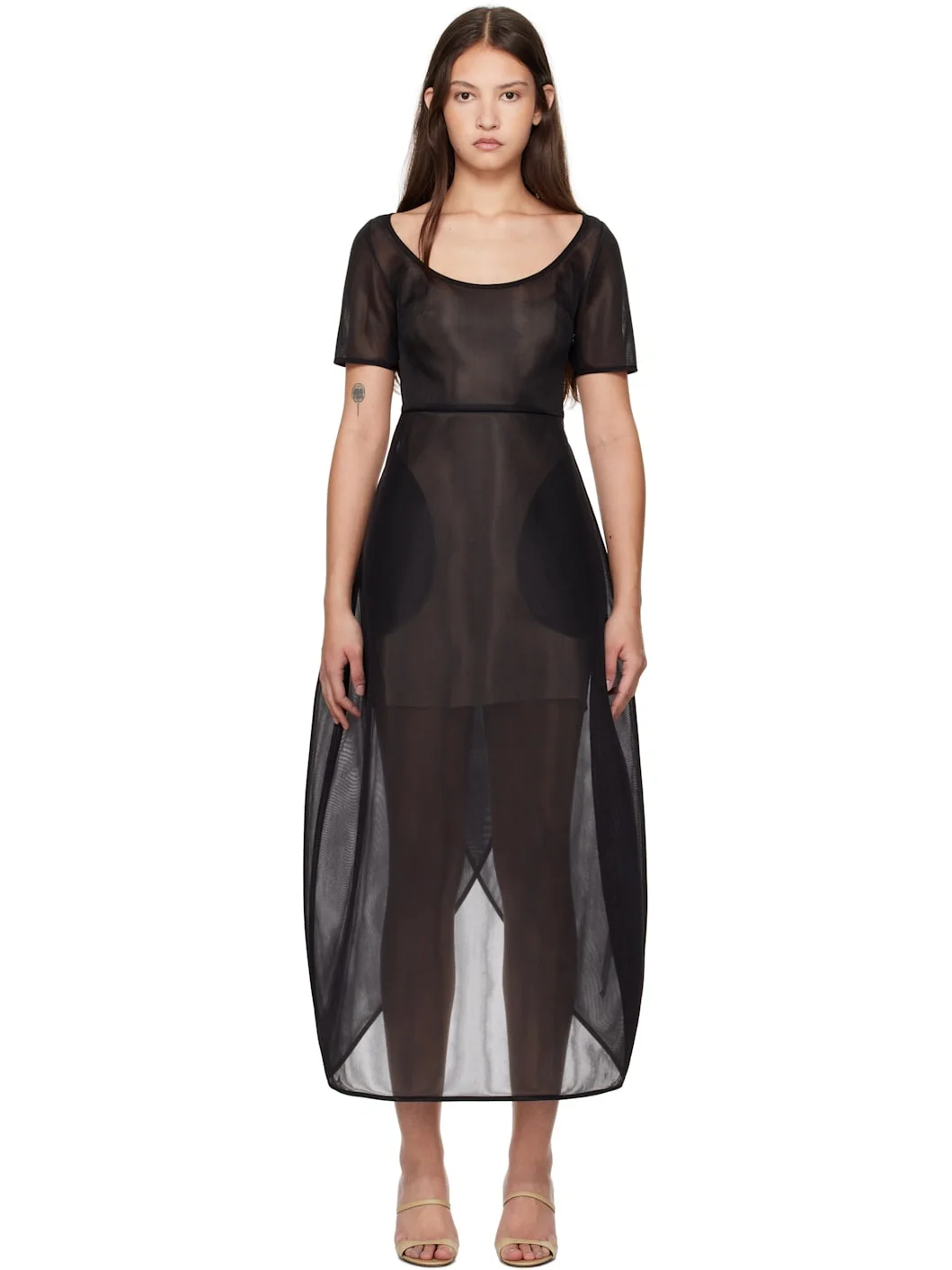 Sheer polyester mesh maxi dress. · Scoop neck · Seam pockets · Central vent at back hem · Detachable twill lining Supplier color: Black 100% polyester. Made in Viet Nam 251749F055004