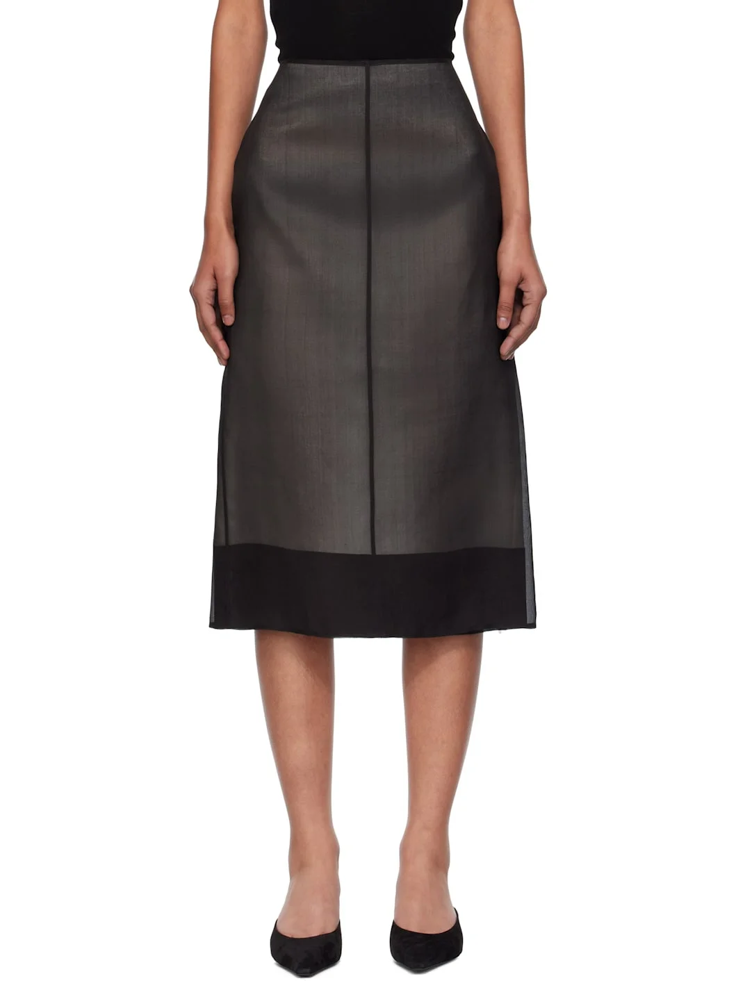 Sheer silk organza midi skirt. · Central seam at front and back · Darts and concealed zip closure at back waist · Full silk twill lining Supplier color: Black/Cream 100% silk. Made in Viet Nam 252749F092007