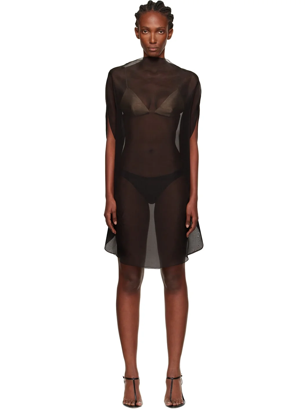 Sheer silk organza cape-style blouse. · Boatneck · Dropped armscyes · Includes satin bralette Supplier color: Black 100% silk. Made in Viet Nam 252749F107005
