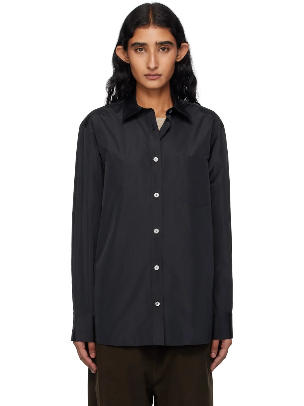 Silk-blend taffeta shirt. · Spread collar · Button closure · Patch pocket at chest · Buttoned barrel cuffs Supplier color: Black 72% polyester, 28% silk. Made in Viet Nam 252749F109008