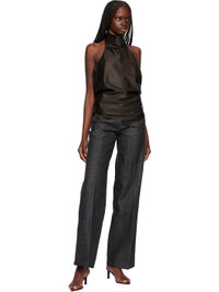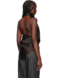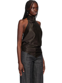Wool broadcloth blouse. · High cowl neck · Pointed hem · Hook-eye fastening at back collar · Draping at low back · Unlined Supplier color: Brown 100% wool. Made in Viet Nam 251749F099000