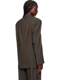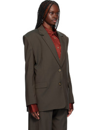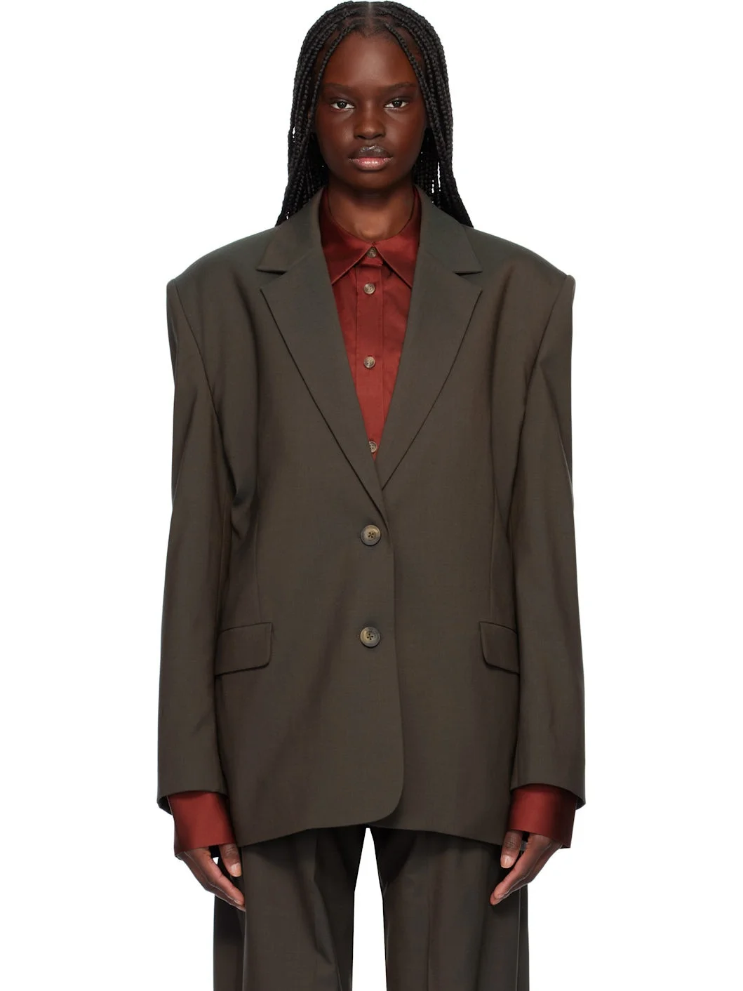Plain-woven wool-blend blazer. · Notched lapel · Button closure · Flap pockets at waist · Padded shoulders · Four-button surgeon's cuffs · Welt pockets at interior · Partial twill lining · Logo-engraved hardware Supplier color: Charcoal 50% wool, 50% polyester. Made in Viet Nam 251749F060000