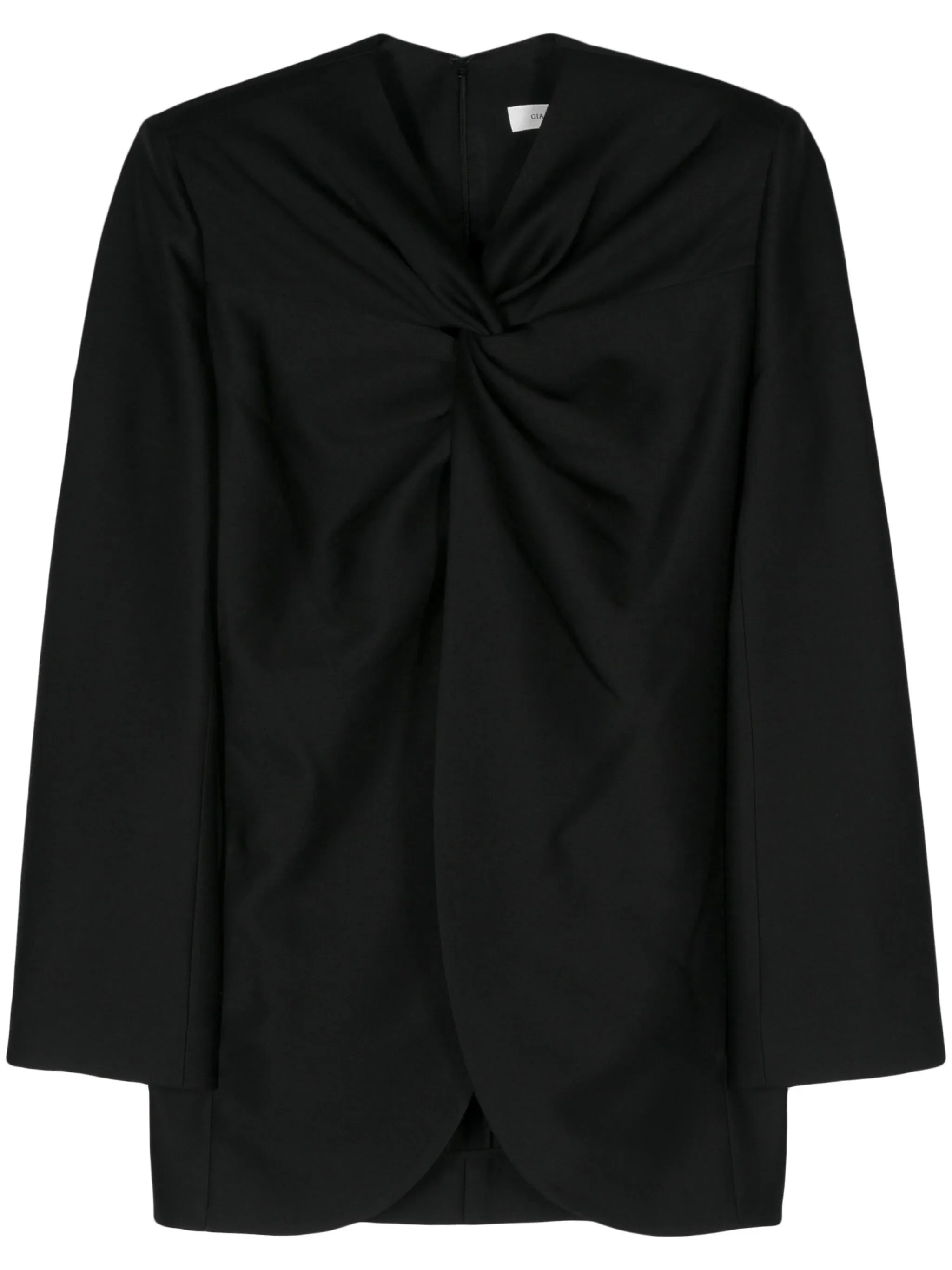 black wool-silk blend twill weave knot detailing V-neck shoulder pads long sleeves front slit slip pockets to the sides curved hem partial lining - Color: BLACK - Made in: Viet Nam - Designer Style ID: JA003 BLACK Composition and care Silk: 30.0%, Wool: 70.0%