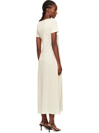 Wool-blend crepe jersey midi dress. · Plunging scoop neck · Seam pockets at waist Supplier color: White 50% wool, 50% polyester. Made in Viet Nam 252749F054004
