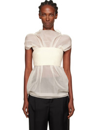 Sheer silk organza and twill blouse. · Paneled construction · Pleats throughout · Boatneck · Darts at chest · Zip and hook-eye closure at back Supplier color: Cream 100% silk. Made in Viet Nam 252749F107006
