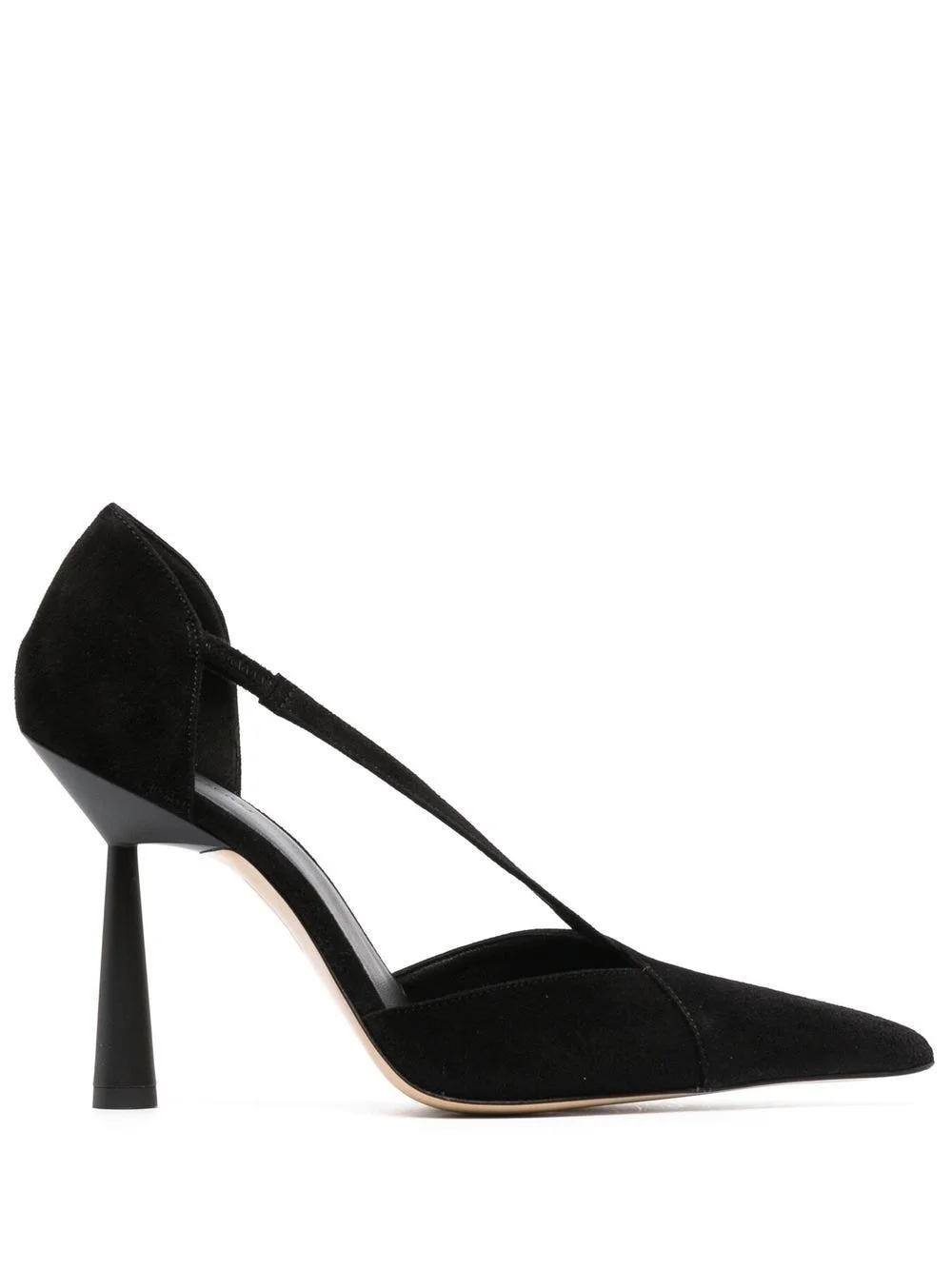 105mm pointed-toe pumps black calf leather/calf suede branded insole pointed toe stiletto heel 105mm heel Made in Italy Composition Suede 100% SIZE & FIT Measurement HEEL 4.13 in(10.5 cm)