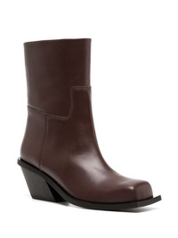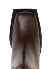 Blondine 75mm leather boots Highlights - Chocolate brown - Calf leather - Smooth grain - Tonal stitching - Square toe - Pull-on style - Branded heel counter - 75mm mid block heel Made in Italy Composition Outer: Calf Leather 100% Lining: Calf Leather 100% Sole: Calf Leather 100% SIZE & FIT Measurement CIRCUMFERENCE 12.2 in(31 cm) HEEL 2.95 in(7.5 cm) HEIGHT 7.08 in(18 cm) Sole height 0.27 in(0.7 cm)