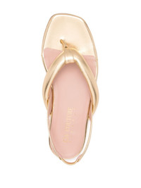 Bora sandals gold-tone leather metallic finish thong strap branded insole flat sole Made in Italy Composition Outer: Leather 100% Lining: Leather 100% Sole: Leather 100% SIZE & FIT Measurement HEEL 0.78 in(2 cm)