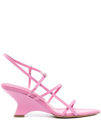 Gia26 70mm leather sandals Crafted from patent leather, the Gia26 sandals by Gia Borghini arrive in a soft pink hue. Made in Italy, they are set on a unique slightly wedged heel that lends the design a contemporary and architectural aesthetic. Highlights - Pink - Calf leather - Patent finish - Thin straps - Open toe - Front buckle fastening - Mid wedge heel Made in Italy Composition Outer: Calf Leather 100% Lining: Calf Leather 100% Sole: Calf Leather 100% SIZE & FIT Measurement HEEL 3.34 in(8.5 cm) Sole height 0.39 in(1 cm)