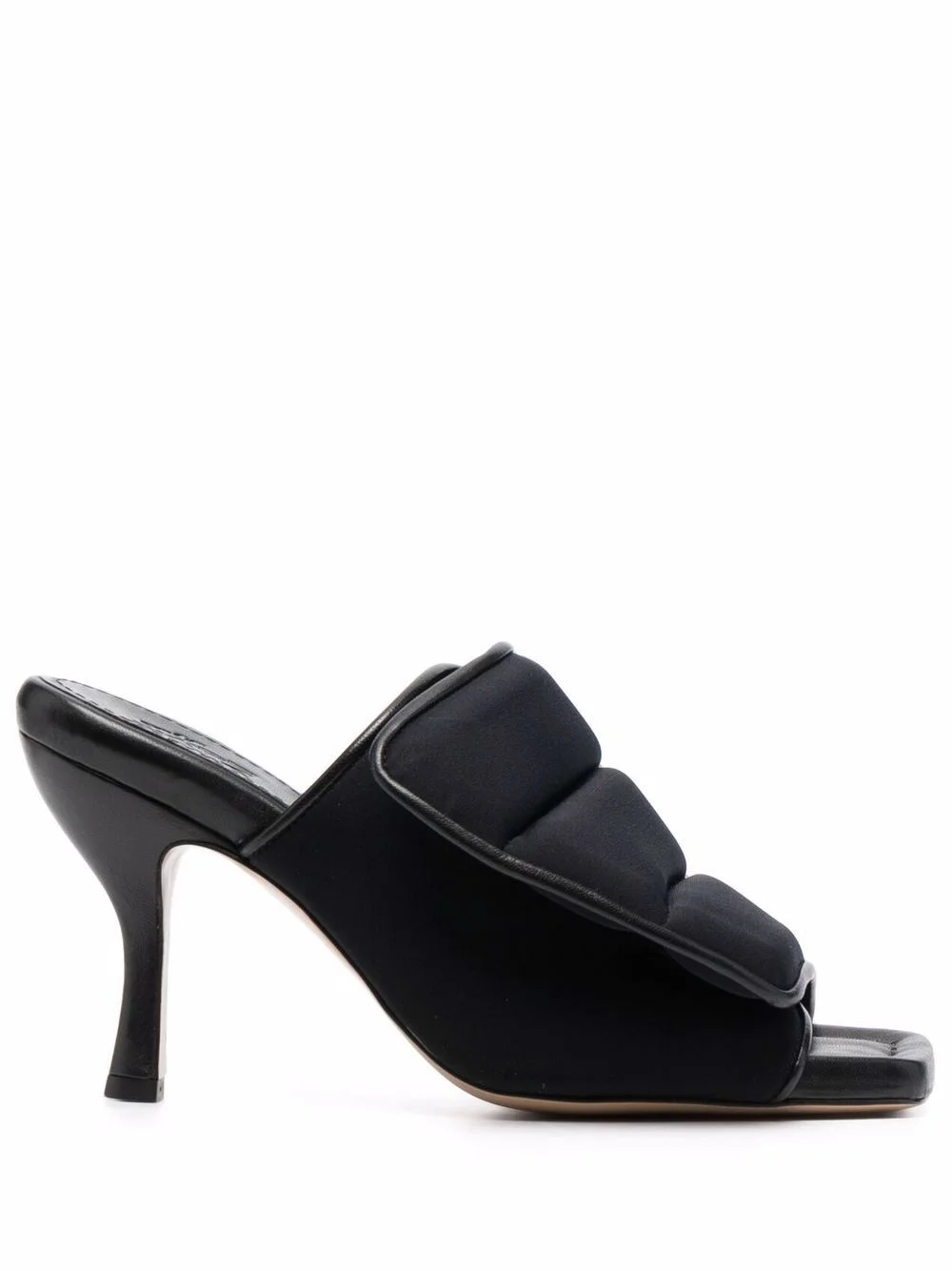 padded leather sandals GIABORGHINI's mules honour the brand's innovative design aesthetic rooted in originality. This padded pair have quilted uppers and and a square toe for a contemporary finish. Highlights - Black - Leather - Ankle touch-strap fastening - Open toe - High heel Made in Italy Composition Outer: Fabric 100%, Calf Leather 100% Lining: Fabric 100%, Calf Leather 100% Sole: Calf Leather 100% SIZE & FIT Measurement HEEL 3.54 in(9 cm) Sole height 0.59 in(1.5 cm)