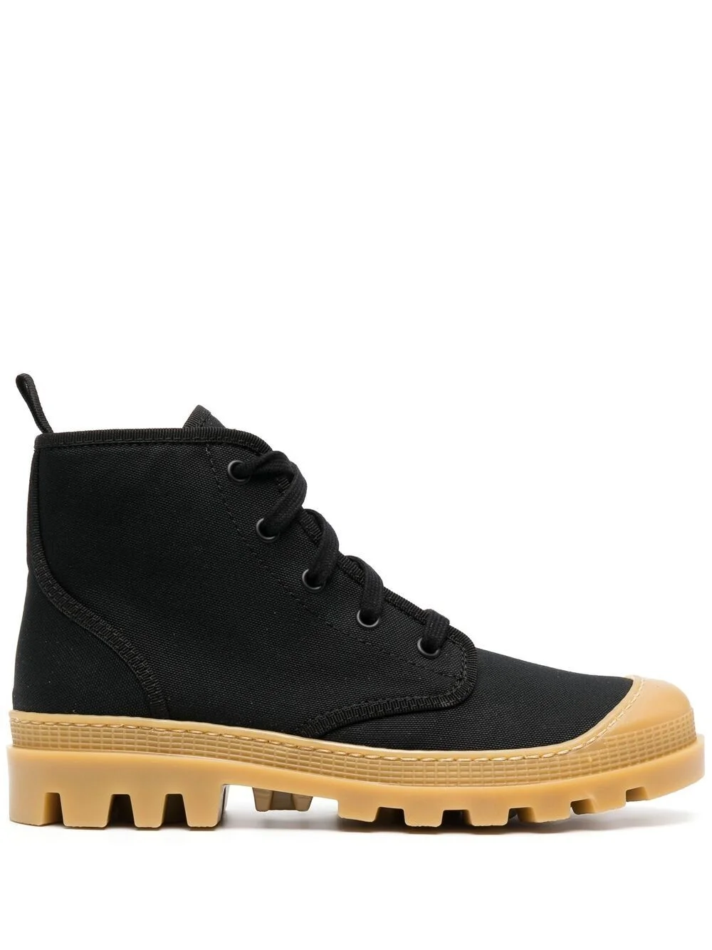 Perni lace-up boots black/beige leather trim round toe front lace-up fastening pull-tab at the heel ridged rubber sole Made in Italy Composition Lining: Calf Leather 100% Outer: Fabric 100% Sole: Rubber 100% SIZE & FIT Measurement HEEL 1.57 in(4 cm) HEIGHT 3.93 in(10 cm) Sole height 0.59 in(1.5 cm)