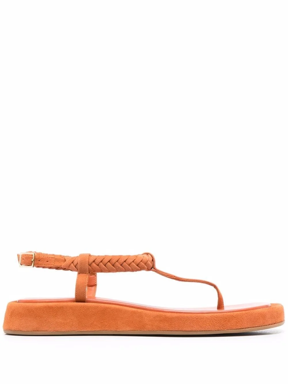 Rosie flat sandals burnt-orange leather braid detailing open toe thong strap branded insole flat rubber sole Made in Italy Composition Suede 100% SIZE & FIT FittingInformation This piece fits small – take one size up Measurement HEEL 1.18 in(3 cm) Sole height 0.78 in(2 cm)