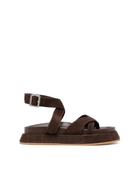 strap-detail open-toe sandals GIABORGHINI's distinctive approach to minimalist design is showcased in this pair of sandals from the SS22 collection. Featuring a tonal colourway, slightly exaggerated strap detailing and the scuptural shape of the high heel stands out even more. Highlights - Green - Tonal design - Strap detailing - Open toe - Ankle strap - High heel Made in Italy Composition Other fibres 100% SIZE & FIT Measurement HEEL 4.72 in(12 cm) Sole height 0.39 in(1 cm)