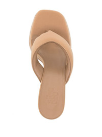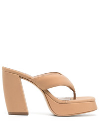 thong-strap 110mm sandals Giaborghini reframes their affection for padded straps in these SS23 sandals. Presented in camel brown, the pair features a thong-strap design and is elevated by curvy block heels that echo the soft aesthetic. Highlights - Walnut brown - Calf leather - Padded design - Thong strap - Open toe - High block heel Made in Italy Composition Outer: Calf Leather 100% Sole: Calf Leather 100% Lining: Calf Leather 100% SIZE & FIT Measurement HEEL 3.93 in(10 cm) Sole height 1.18 in(3 cm) Washing instructions Read Manufacturer Guidelines