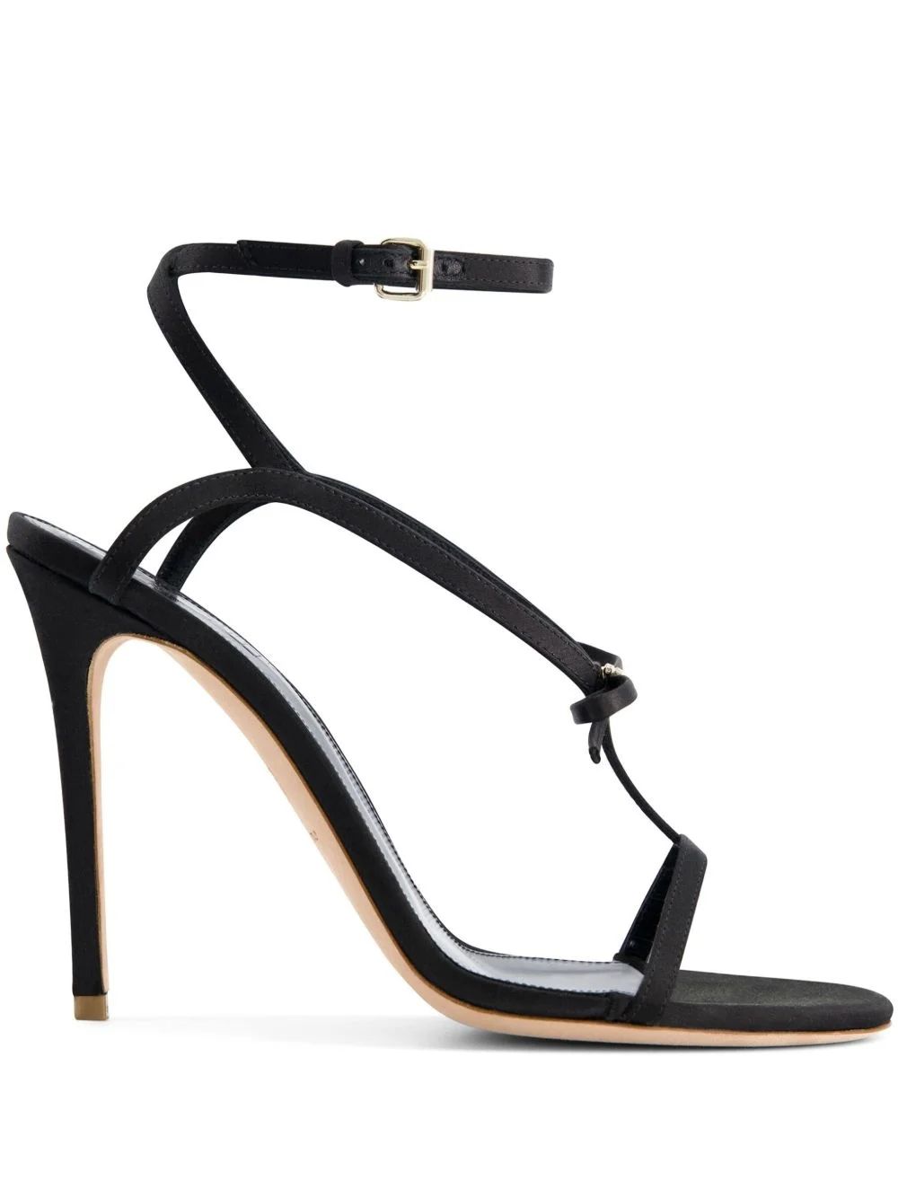 90mm bow-embellished satin sandals Highlights - Black - Silk satin - Bow detailing - Rhinestone embellishment - Open toe - Buckle-fastening ankle strap - Branded insole - High 90mm stiletto heel Made in Italy Composition Silk 100% SIZE & FIT Measurement HEEL 3.54 in(9 cm)