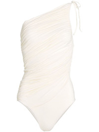 asymmetric swimsuit Highlights - White - Self-tie fastening - One-shoulder - Asymmetric design - Be mindful to try on swimwear over your own garments. Made in Italy Composition Nylon 80%, Elastane 20%