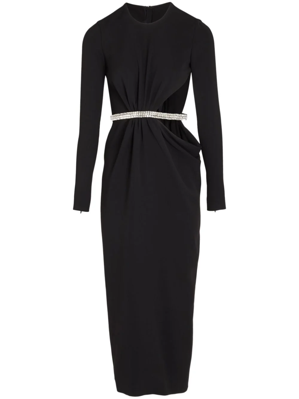 rhinestone embellished dress Highlights - Black - Rhinestone embellishment - Concealed rear zip fastening - Round neck - Long sleeves - Openwork areas - Cuff zips - Ankle-length Made in Italy Composition Rhinestone 100%, Viscose 96%, Elastane 4%