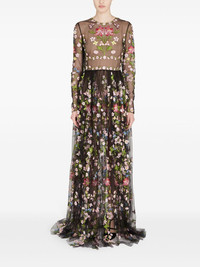 botanical tulle dress Highlights - Black - All-over floral embroidery - Concealed side zip fastening - Semi-sheer construction - Tulle overlay - Crew neck - Long sleeves - Maxi Made in Italy Composition Polyester 68%, Nylon 32%