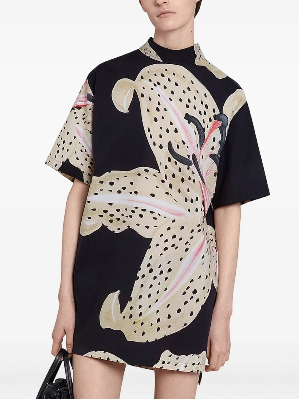 lily-print poplin blouse Highlights - Black - Lily print - Mock neck - Short sleeves Made in Italy Composition Cotton 100% Washing instructions Read Manufacturer Guidelines