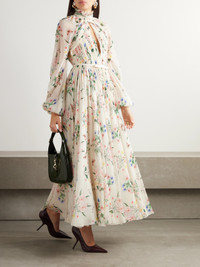 Giambattista Valli's gown is from the label's Fall '24 collection inspired by the late Lee Radziwill. Made from floral-print silk-georgette, it's pleated throughout and has a generous cutout at the center of the bodice. Use the slim belt to further cinch the waist, echoing the runway with platforms.