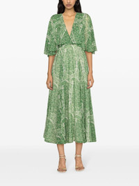botanical-print silk midi dress Giambattista Vali displays its romantic aesthetic through this midi dress. Crafted from silk, it's adorned with a botanical print. Highlights - Ivory white/green - Silk - Botanical print - Draped panel detail - Bow detailing - V-neck - Concealed rear hook and zip fastening - Sleeveless - Fitted waistline - Straight hem - Full lining - Mid-length Made in Italy Composition Silk 100% SIZE & FIT Model measurements Height 5 ft 10 in(1.78 m) Bust/Chest 31.49 in(80 cm) Hips 35.03 in(89 cm) Waist 23.62 in(60 cm) FittingInformation Designed for a close fit at the chest and waist with a loose fit at the hip Made from a midweight non-stretch fabric This piece fits true to size – take your usual size Washing instructions Dry Clean Only