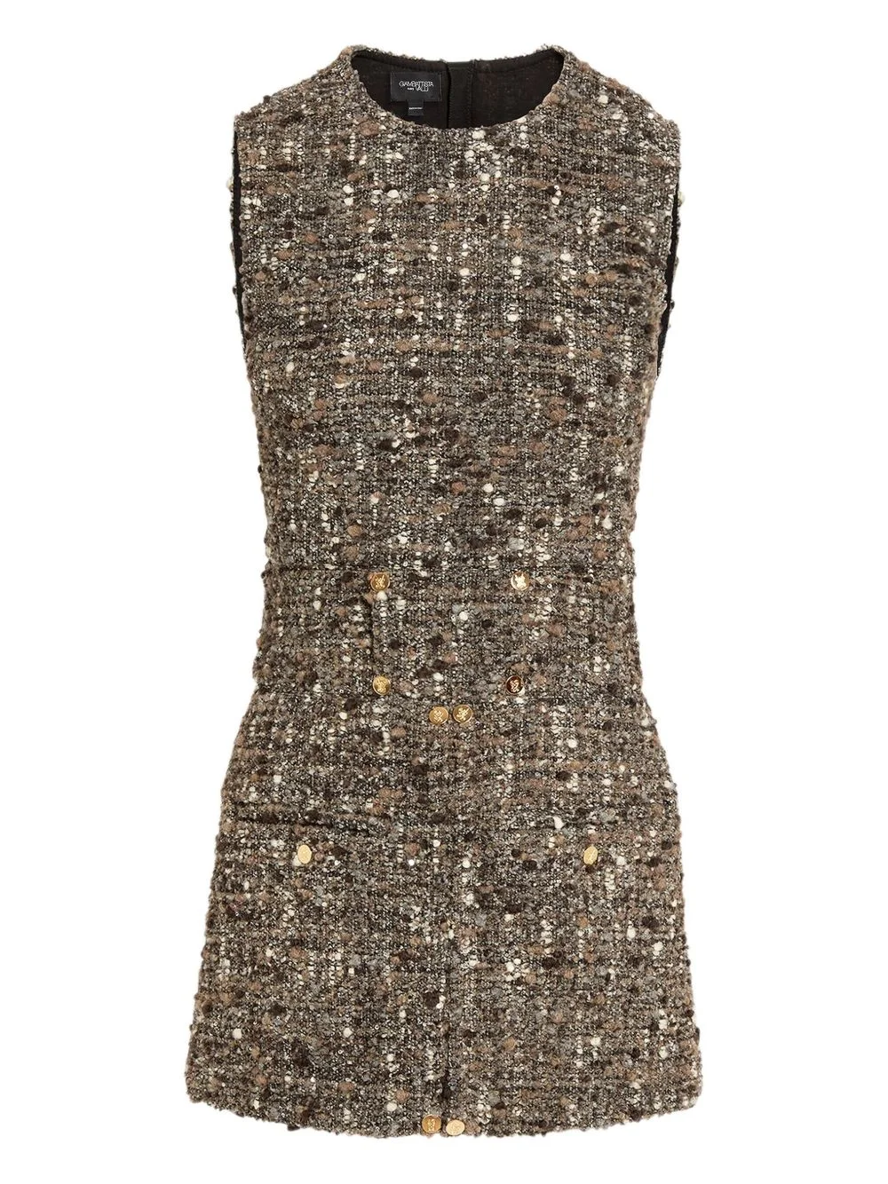 boucle button-detail mini dress Highlights - Brown - Boucle texture - Sleeveless - Round neck - Gold button embellishment - Flap pockets Made in Italy Composition Virgin Wool 79%, Polyester 14%, Polyamide 7% Washing instructions Read Manufacturer Guidelines