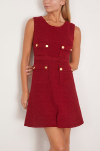 The Giambattista Valli Dress in Titan Red has the ladylike look you love from this designer. This dress is crafted in boucle wool with a shift silhouette with gold decorative buttons. Wear yours with the matching coat and heels. - Knee length - Shift silhouette - Decorative buttons - Front slit - Boucle wool - 93% Virgin wool 7% polyamide