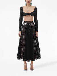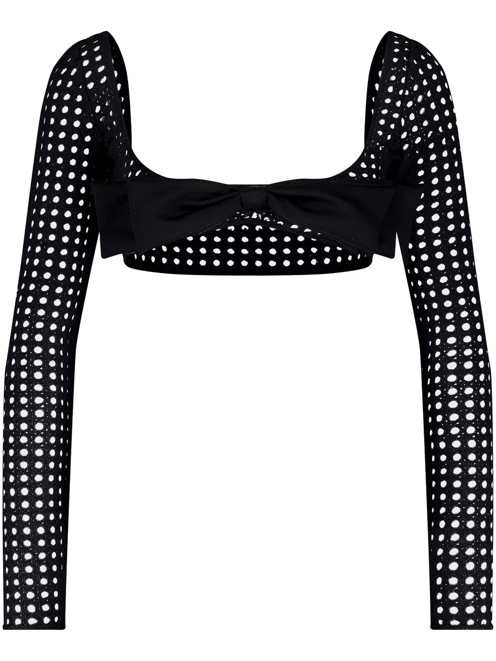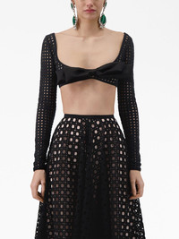 bow-detail crochet cropped top Giambattista Valli is renowned for its beautifully crafted, feminine designs, as illustrated by this SS23 cropped top. Crafted in Italy from black silk, it boasts an open crochet design enhanced with an oversized bow on the front. Made in Italy Composition Polyester 100%