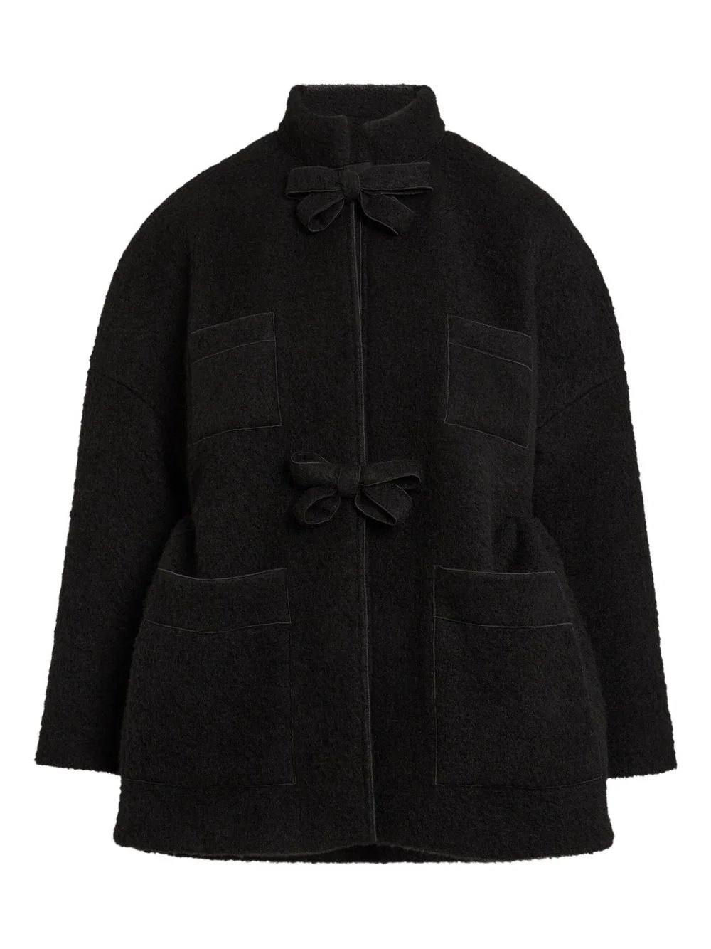 bow-detailed patch-pocket coat Highlights - Black - Bow detailing - Patch pockets - Button fastening Made in Italy Composition Alpaca 80%, Polyamide 20% Washing instructions Read Manufacturer Guidelines