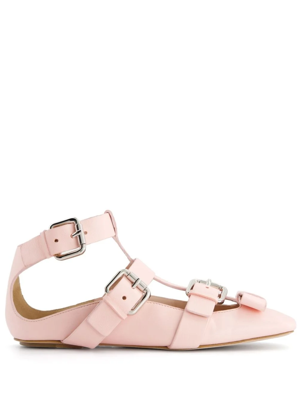 buckled pumps Highlights - Light pink - Leather - Caged design - Buckle fastening - Ankle-length - Bow detailing - Square toe - Branded insole - Flat leather sole Made in Italy Composition Sole: Calf Leather 100% Lining: Calf Leather 100% Outer: Lamb Nubuck Leather 100% SIZE & FIT Measurement HEEL 0.31 in(0.8 cm)