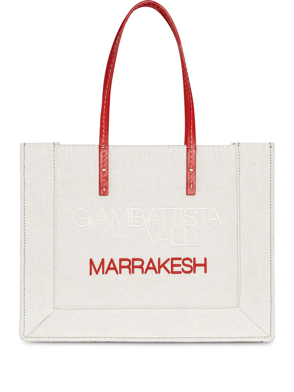 canvas tote bag Highlights - White - Two long top handles - Internal patch pocket - Embroidered logo to the front Made in Italy Composition Outer: Calf Leather 100%, Cotton 57%, Linen/Flax 43%