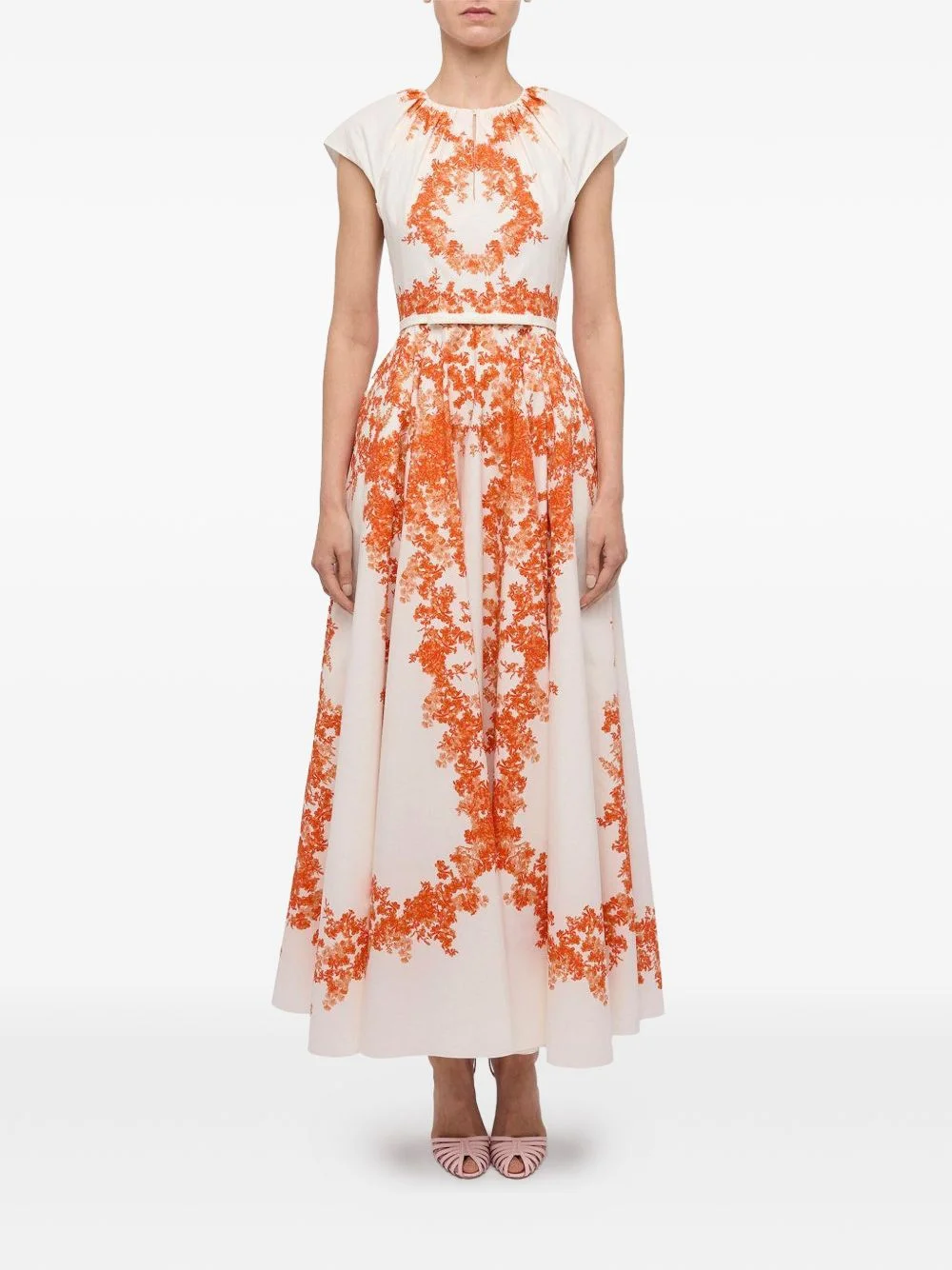 floral-print maxi dress Highlights - White and orange - Floral print - Cap sleeves - Round neck - Maxi length Made in Italy Composition Cotton 100% Washing instructions Dry Clean Only