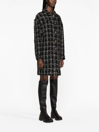 checked tweed coat Giambattista Valli spotlights its refined aesthetic with this coat. It’s crafted from tweed to a single-breasted silhouette and adorned with a contrasting check pattern. The oversized enamelled buttons nod to ‘60s styles. Highlights - Black/white - Tweed - Check pattern - Spread collar - Front button fastening - Drop shoulder - Long sleeves - Straight hem - Mid-length Made in Italy Composition Outer: Polyester 32%, Wool 24%, Cotton 20%, Polyamide 15%, Acrylic 9% Lining: Polyester 100% SIZE & FIT Model measurements Height 5 ft 11 in(1.8 m) Bust/Chest 34.25 in(87 cm) Hips 35.82 in(91 cm) Waist 24.8 in(63 cm) FittingInformation Designed to be unstructured, offering a loose fit throughout Made from a midweight non-stretch fabric This piece fits true to size – take your usual size Washing instructions Dry Clean Only