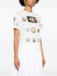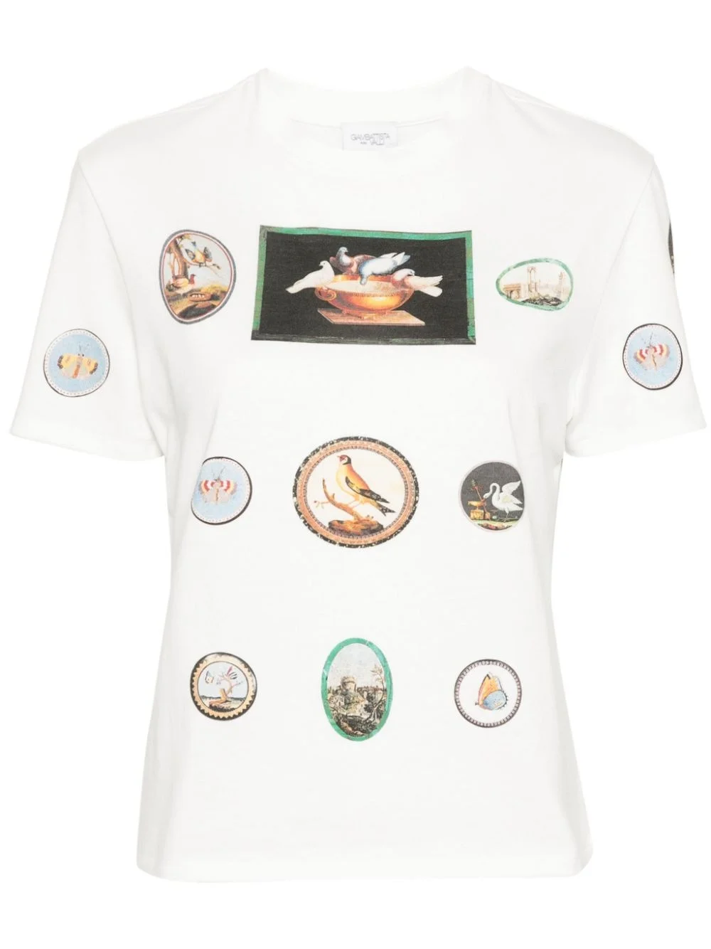 graphic-print cotton T-shirt Highlights - White - Cotton - Jersey texture - Graphic print to the front - Crew neck - Short sleeves - Straight hem Made in Italy Composition Cotton 100% SIZE & FIT Model measurements Height 5 ft 10 in(1.78 m) Bust/Chest 32.67 in(83 cm) Hips 35.43 in(90 cm) Waist 23.22 in(59 cm) FittingInformation Designed for a slim fit that sits just away from the body offering a close yet comfortable fit Made from a midweight non-stretch fabric, this piece offers minimal elasticity when worn This piece fits true to size – take your usual size