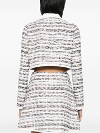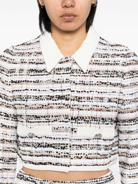 tweed jacket Highlights - White/multicolour - Cotton-silk blend - Front press-stud fastening - Tweed - Silver-tone hardware - Long sleeves - Partial lining - Cropped Made in Italy Composition Outer: Cotton 57%, Polyamide 23%, Polyester 17%, Acrylic 3%, Viscose 1% Lining: Silk 100% SIZE & FIT Model measurements Height 5 ft 10 in(1.77 m) Bust/Chest 31.49 in(80 cm) Hips 35.43 in(90 cm) Waist 25.19 in(64 cm) Measurement BUST 37.79 in(96 cm) LENGTH 14.56 in(37 cm) Shoulder Width 13.77 in(35 cm) SLEEVE LENGTH 25.59 in(65 cm) WAIST 36.22 in(92 cm) FittingInformation Designed for a boxy fit, intended for a loose fit throughout Cropped in length Made from a midweight non-stretch fabric Washing instructions Dry Clean Only