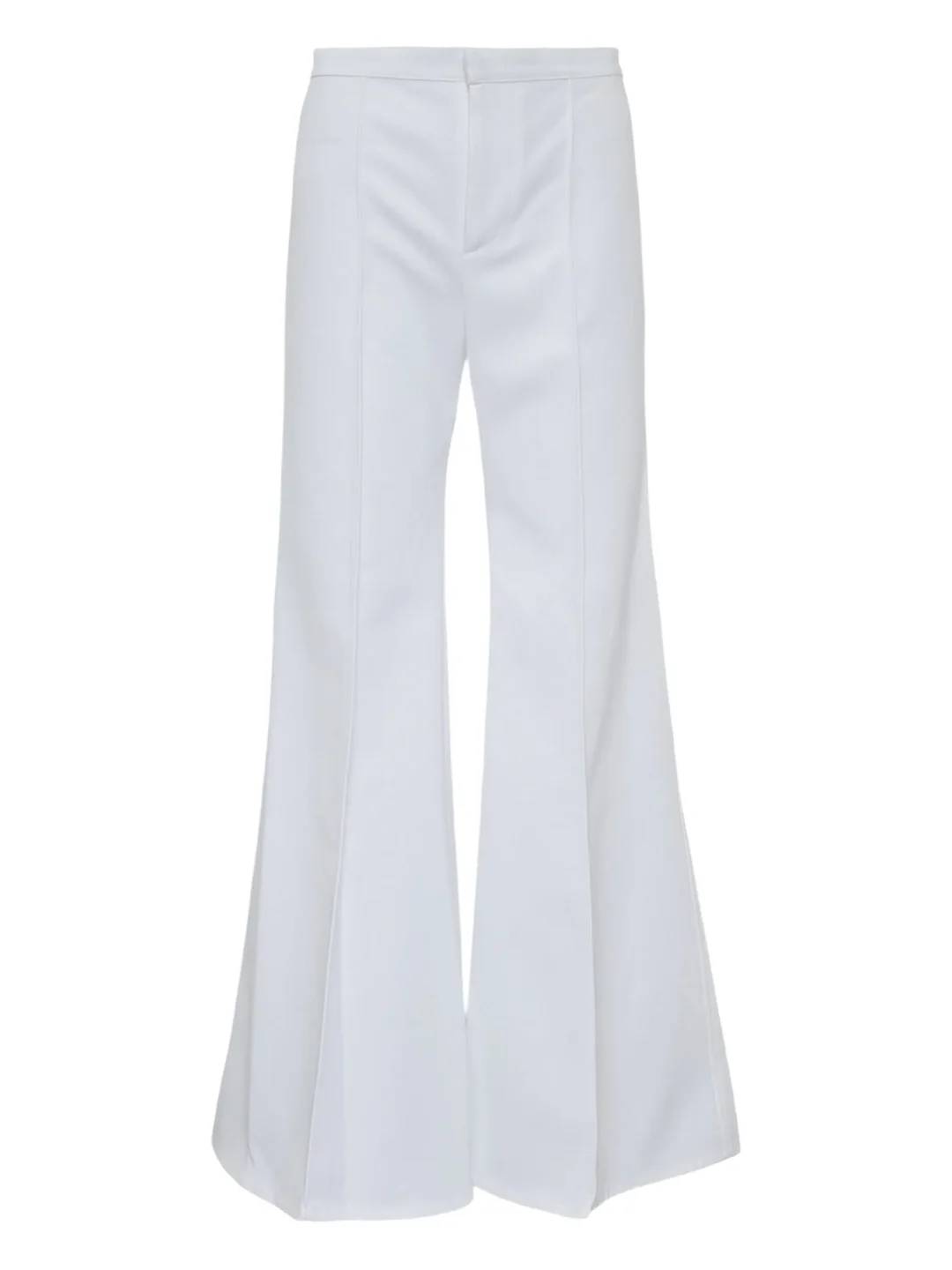300046666WHT-42 / E525SSPVGT3001-30CAS/1101/WHIT - High-waisted design - Flared bell-bottom silhouette - Premium cotton gabardine construction - Side zip closure - Pressed center creases - Tailored fit through hips Giambattista Valli Cotton Gabardine Pants deliver refined Italian tailoring with contemporary flared silhouette. Crafted from premium cotton gabardine in crisp white, featuring a high-waisted design with dramatic bell-bottom leg opening. The structured fabric and signature Valli proportions create an elegant statement piece perfect for modern feminine styling.