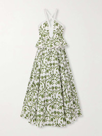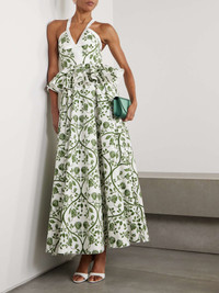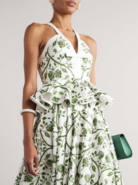 EDITORS'NOTES Giambattista Valli celebrates femininity, romance, and a sense of fantasy, drawing inspiration from art, history, and nature. This maxi dress is made from cotton-poplin patterned with watercolor-inspired flowers and has flouncy peplum ruffles that add pretty dimension. The floaty skirt moves gracefully with you. SIZE & FIT Model measurements: - Fits true to size, however those who are between sizes should take the smaller size - Designed to be fitted at the bust and waist, loose at the hip - Lightweight, non-stretchy fabric - Model is 180cm/ 5'11" and is wearing an IT 38 - Bust: 85cm/ 33.5" - Waist: 62cm/ 24.5" - Hip: 88cm/ 34.5" DETAILS & CARE - White and green cotton-poplin - Concealed hook and zip fastening at back - 100% cotton - Machine wash