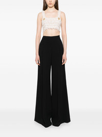 high-rise wide-leg trousers Highlights - Black - Pleat detailing - High-waisted - Wide leg - Concealed side zip fastening - Straight hem Imported Composition Outer: Viscose 97%, Elastane 3% Lining: Acetate 75%, Silk 25% SIZE & FIT Model measurements Height 5 ft 10 in(1.77 m) Bust/Chest 27.95 in(71 cm) Hips 34.64 in(88 cm) Waist 22.83 in(58 cm) Measurement FRONT RISE 13.38 in(34 cm) INSIDE LEG 35.43 in(90 cm) BACK RISE 15.74 in(40 cm) HIPS 36.22 in(92 cm) Hem Width 16.92 in(43 cm) WAIST 27.55 in(70 cm) FittingInformation Designed with a wide-leg cut, these trousers allow for a close fit at the waist and offer a loose and roomy fit over the leg Made from a midweight stretch fabric, this piece offers elasticity and flexibility when worn This piece fits true to size – take your usual size
