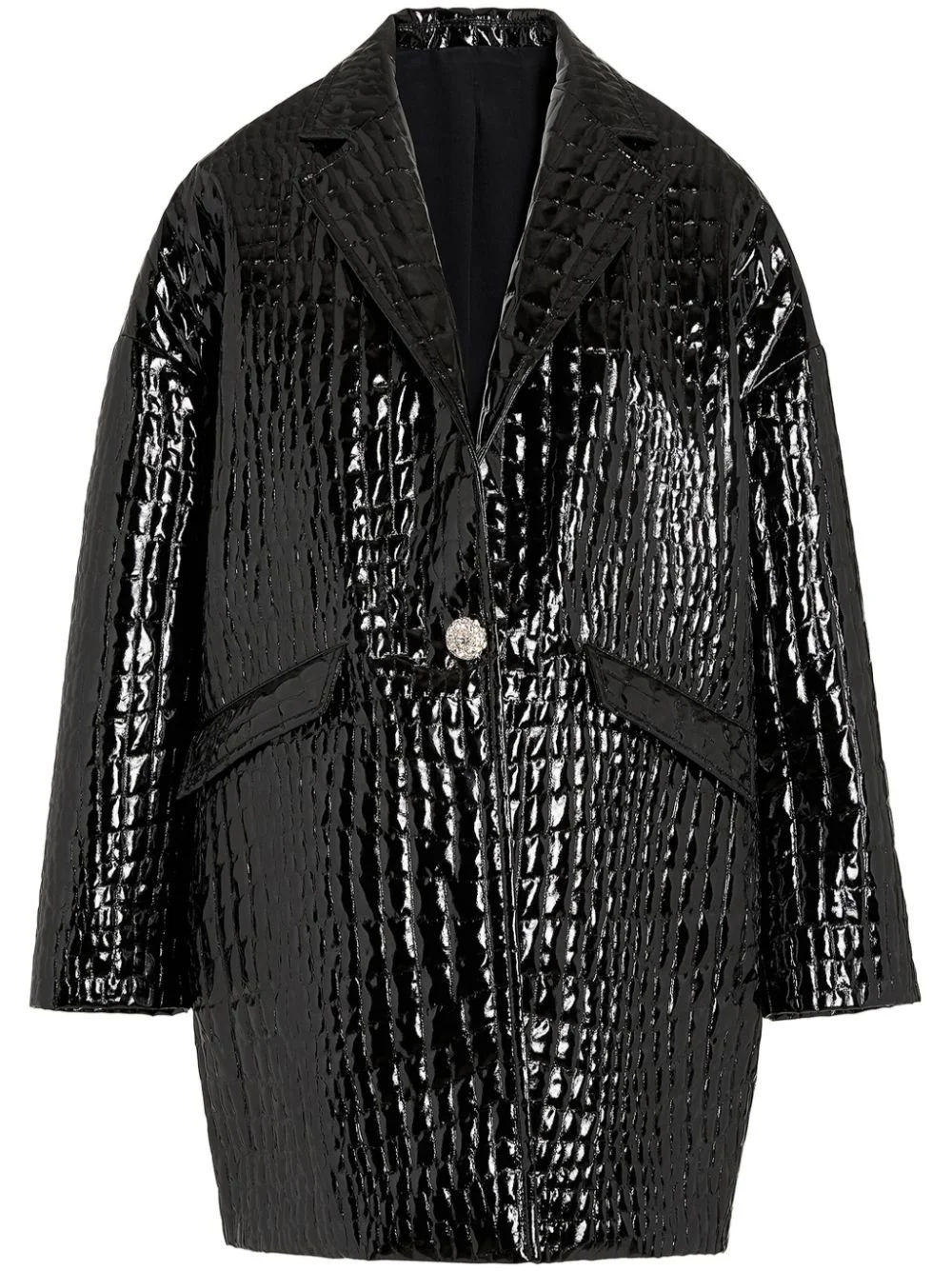 crocodile-embossed coat Highlights - Black - Front button fastening - Two side flap pockets - Notched collar - Long sleeves Made in Italy Composition Polyester 56%, Acrylic 44%