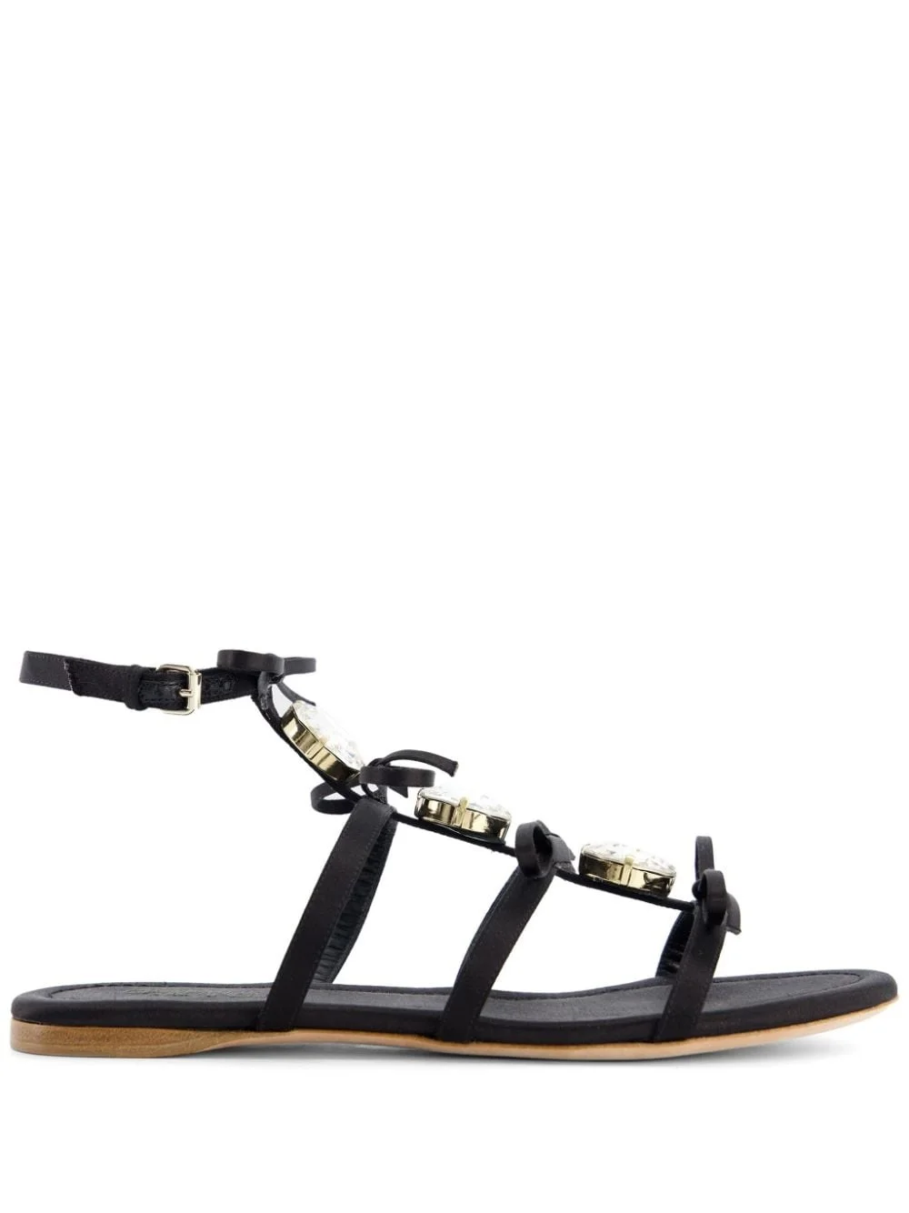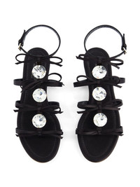 crystal-embellished leather sandals Highlights - Black - Calf leather/silk - Crystal embellishment - Bow detailing - Side buckle fastening - Branded footbed - Leather sole Made in Italy Composition Silk 100% Washing instructions Do Not Wash/Do Not Dry Clean