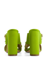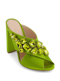 crystal-embellished mules Highlights - Apple green - High block heel - Crossover strap detail - Slip-on style - Open toe Made in Italy Composition Sole: Leather 100% Lining: Calf Leather 100% Outer: Silk Satin 100%