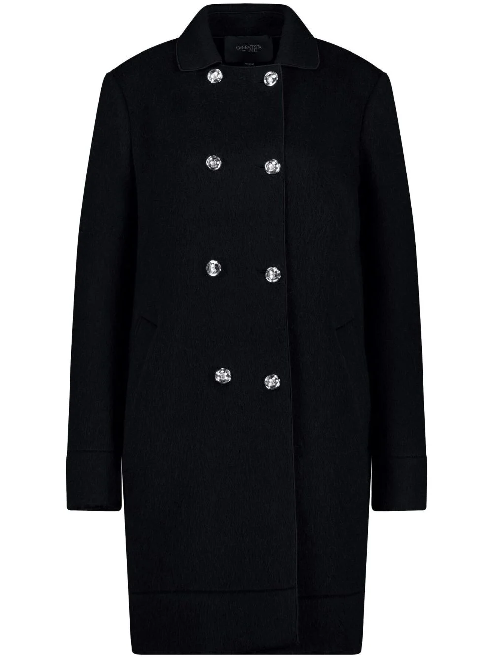 double-breasted wool-blend coat An affinity for masterful construction and structured silhouettes underpins Giambattista Valli's aesthetic, and this black tailored coat is proof. It's cut from wool and silk and is fitted with a double-breasted button front fastening with logo-engraved silver-tone buttons. Highlights - Black - Wool-silk blend - Spread collar - Double-breasted button fastening - Long sleeves - Two side welt pockets - Straight hem - Mid-length Made in Italy Composition Wool 82%, Alpaca Wool 16%, Silk 2% Washing instructions Dry Clean Only