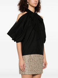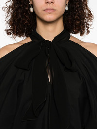 draped blouse Highlights - Black - Concealed rear hook and zip fastening - Halterneck tie fastening - Sleeveless Made in Italy Composition Cotton 100%, Silk 100% SIZE & FIT Model measurements Height 5 ft 10 in(1.79 m) Bust/Chest 31.88 in(81 cm) Hips 35.43 in(90 cm) Waist 23.62 in(60 cm) FittingInformation Designed to be unstructured, offering a loose fit throughout Made from a midweight non-stretch fabric