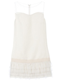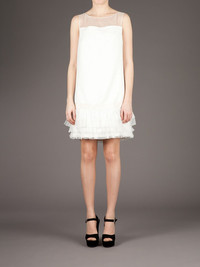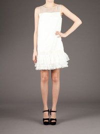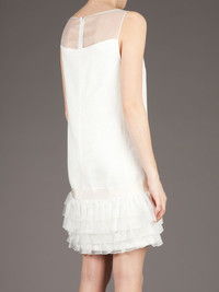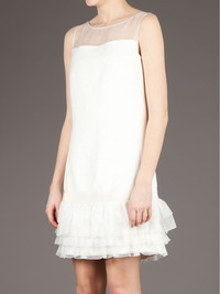 drop-waisted shift dress Off-white silk shift dress from Giambattista Valli featuring a sheer high-neck sleeveless panel to chest and a concealed zip at back, a straight cut, and a low drop-waist detail finishing in four ruffled layers. Made in Italy Composition Outer: Linen/Flax 82%, Viscose 18% Lining: Silk 100% Washing instructions Dry Clean Only